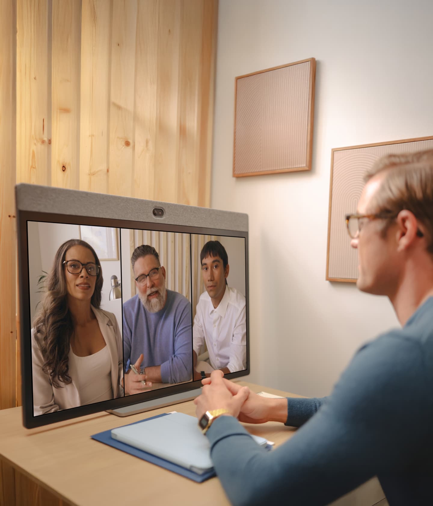 Neat Board 32 智能构图让参会者尽显,定向音频清晰收音、隔绝噪音,让每位与会者都被看见、被听见。