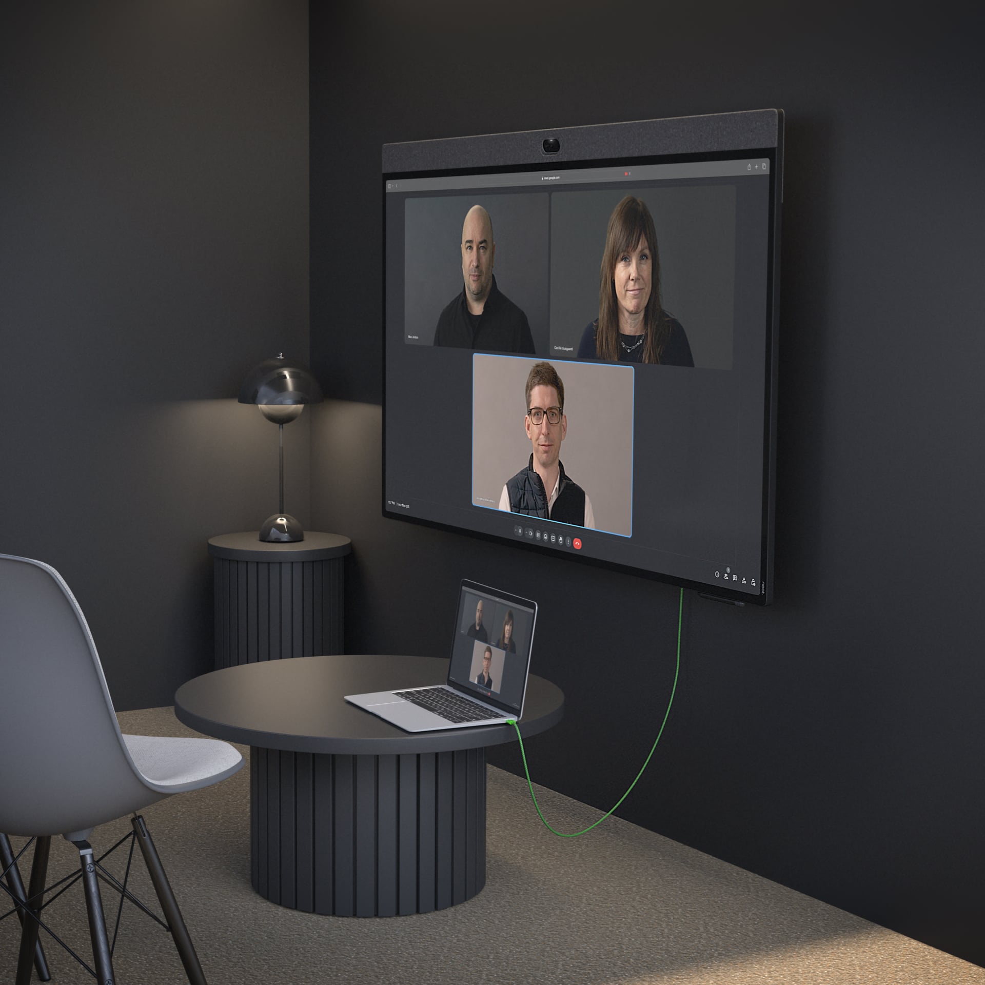 Neat Board Pro 支持单根 USB‑C 电缆连接 BYOD 模式,同时为笔记本电脑充电,并提供 Neat Board Pro 所有硬件加速的音频和视频处理功能。