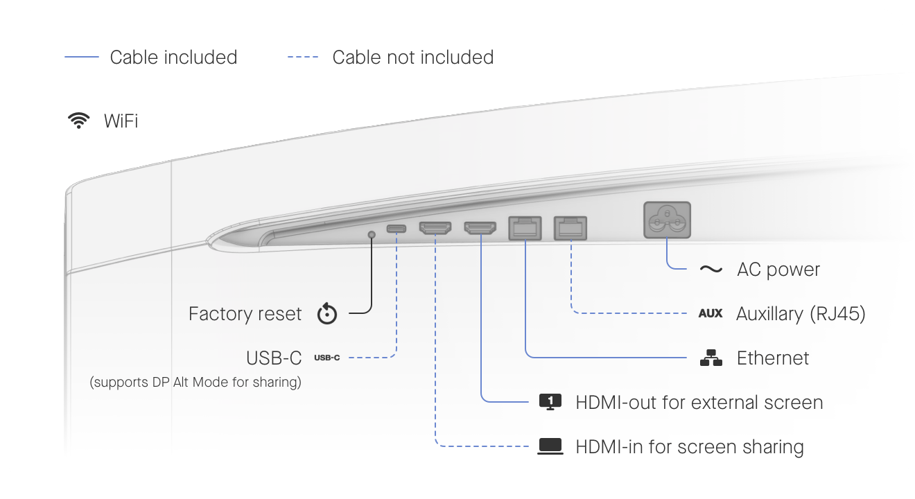 HDMI 输出支持双屏布局,让您更清晰地看到人员和内容。支持第三方音频扩展,可连接现有或专用音频设备。