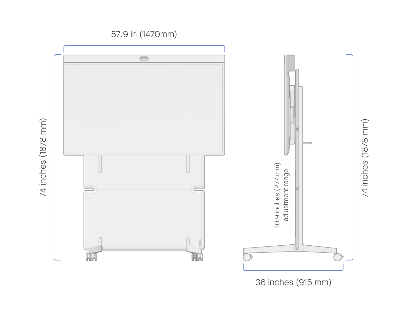 Neat Board Pro 提供可调节高度的壁挂选项和落地支架,使您能够上下移动屏幕,实现与人员的直接眼神交流,并在与设备互动时符合人体工学。