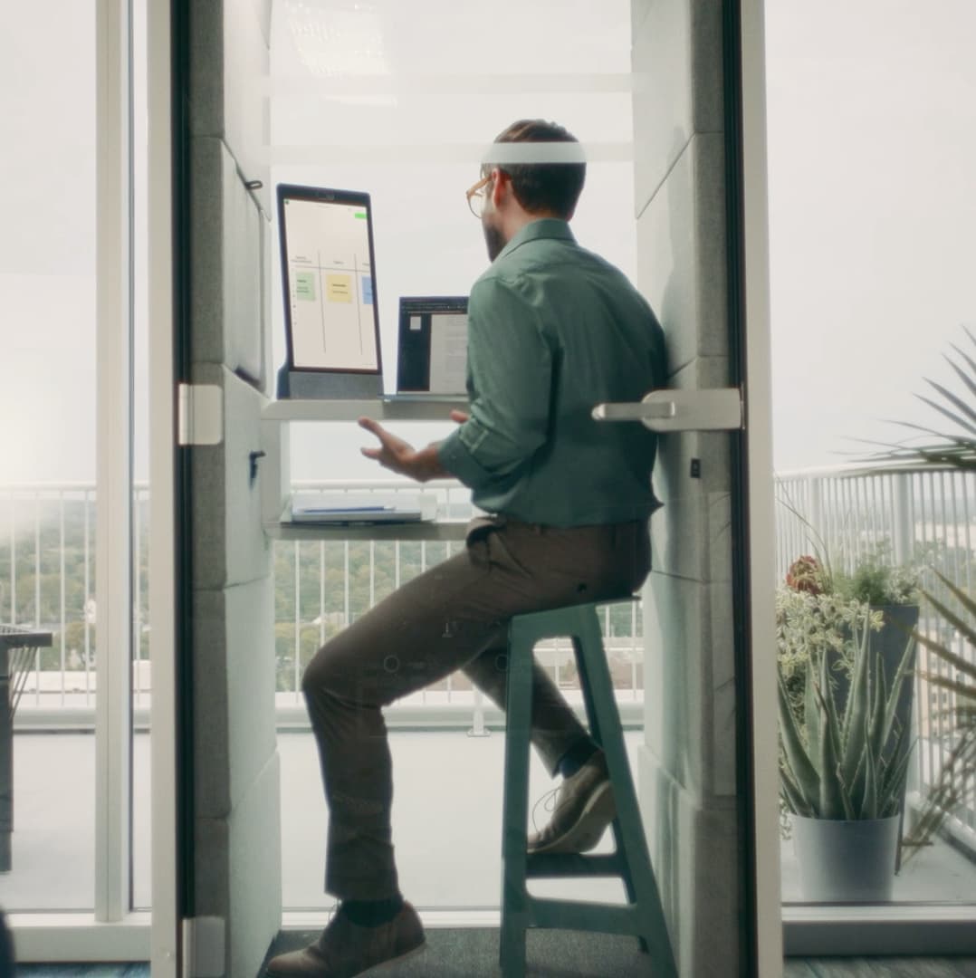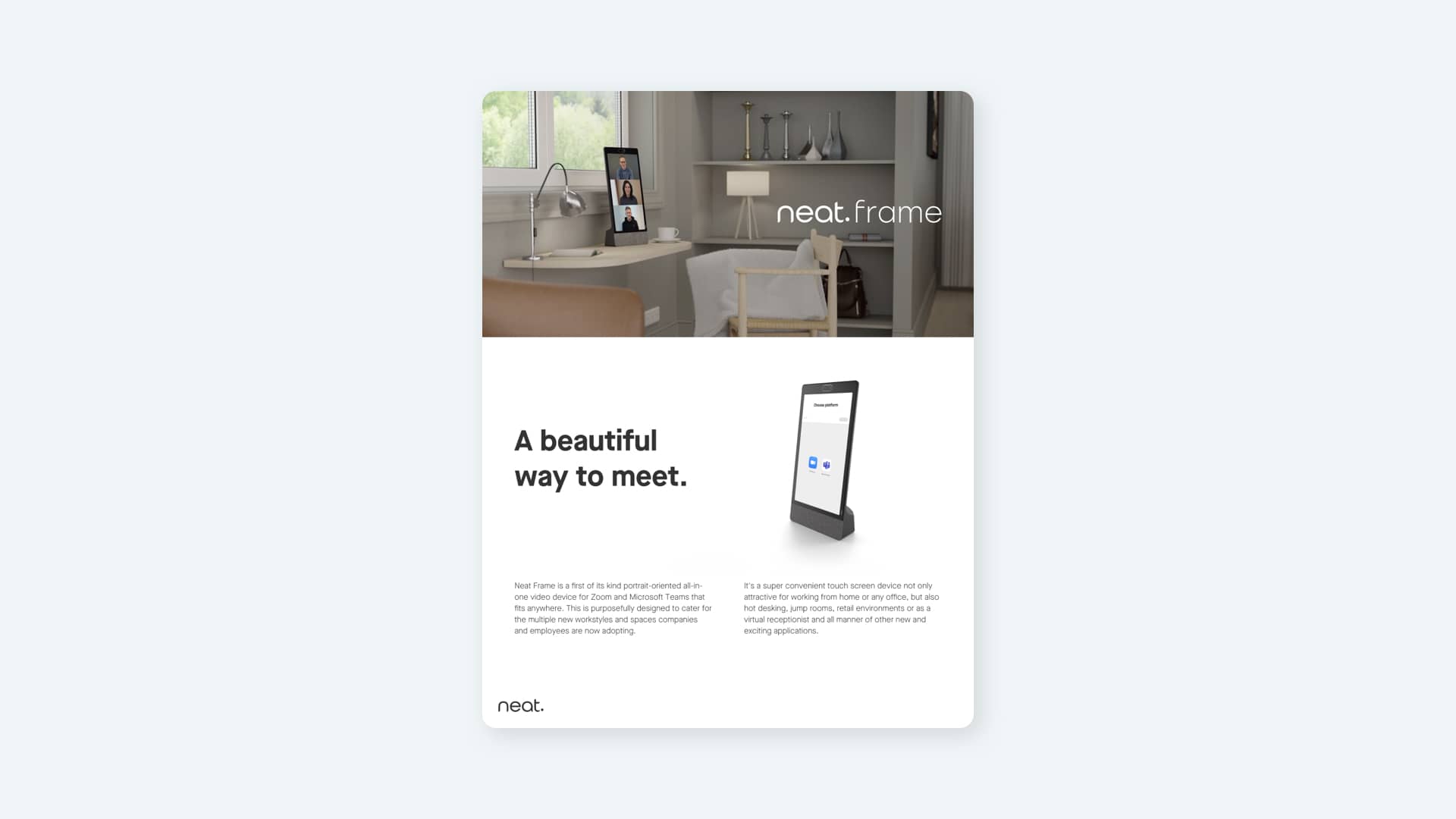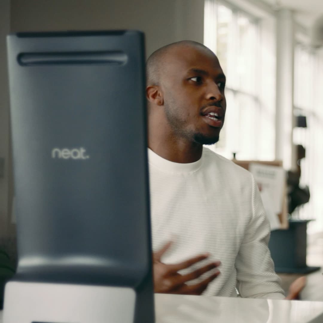 Neat Frame 自动以 113° 的高分辨率视野和 4 倍变焦捕捉您的身影,无论您是坐着、站着还是在空间内走动。