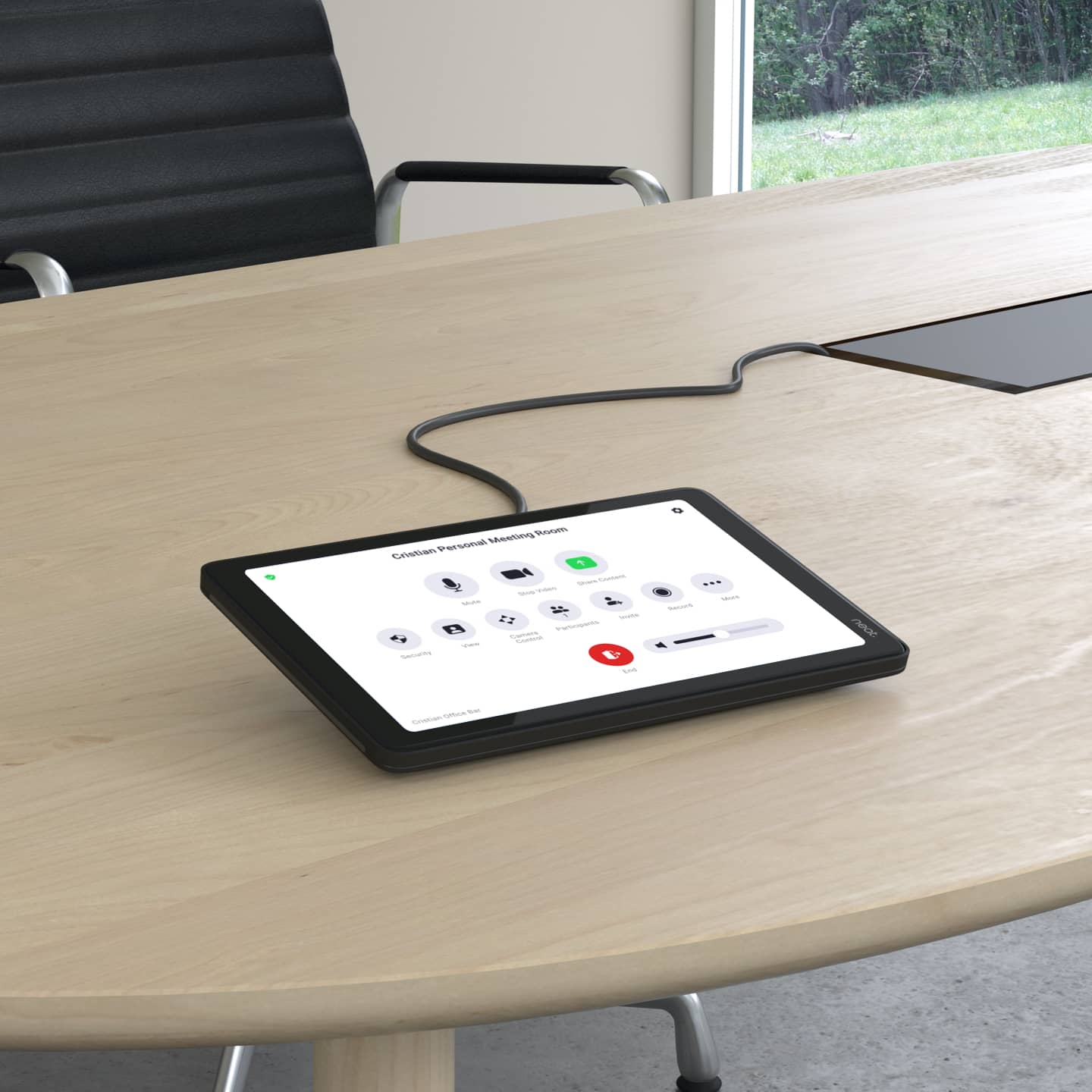 当配置为控制器时,Neat Pad 确保任何会议室始终处于准备状态。你可以添加多个 Neat Pad,使每个人都能从会议桌的任何位置访问其控制功能。
