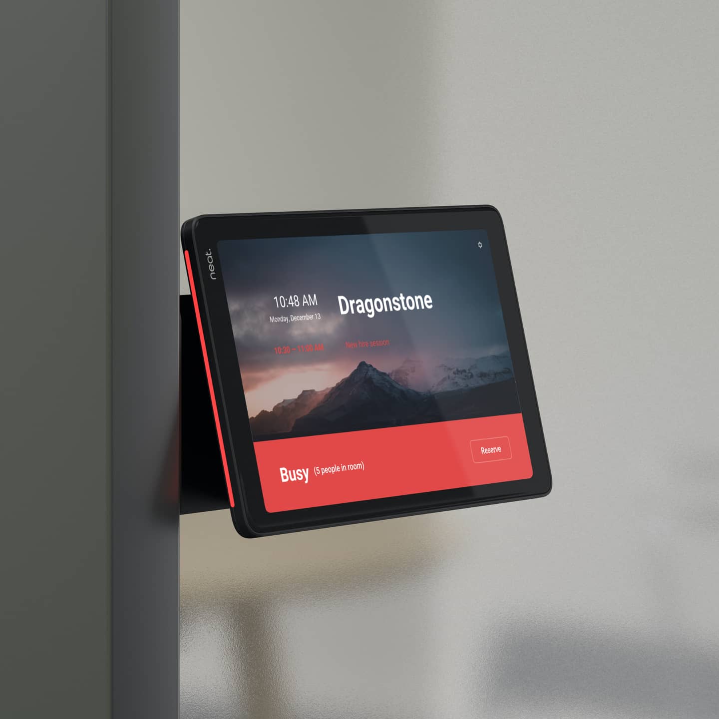 Neat Pad 具有最佳的屏幕角度,方便查看和互动。无论是放置在桌面上或墙上,用于控制会议还是在会议室外显示房间可用性,纤薄的设计使其能够完美适应任何空间。