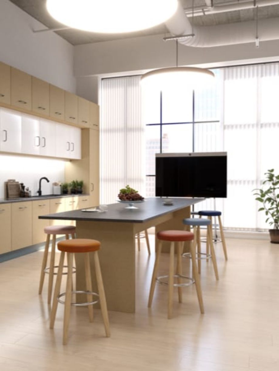 开放式办公室为员工提供工作和社交区域,激发自发聚会、协作会议和敏捷团队活动,同时也支持个人视频会议,与远程同事快速同步。